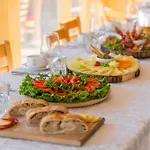 Krvavec i Cerklje na Gorenjskem serverar sina gäster en frukostbuffé på morgonen.
